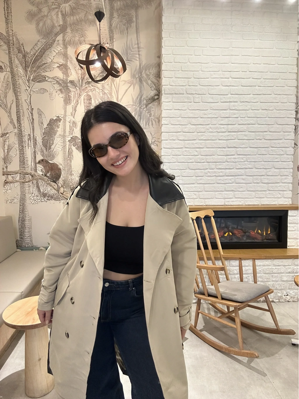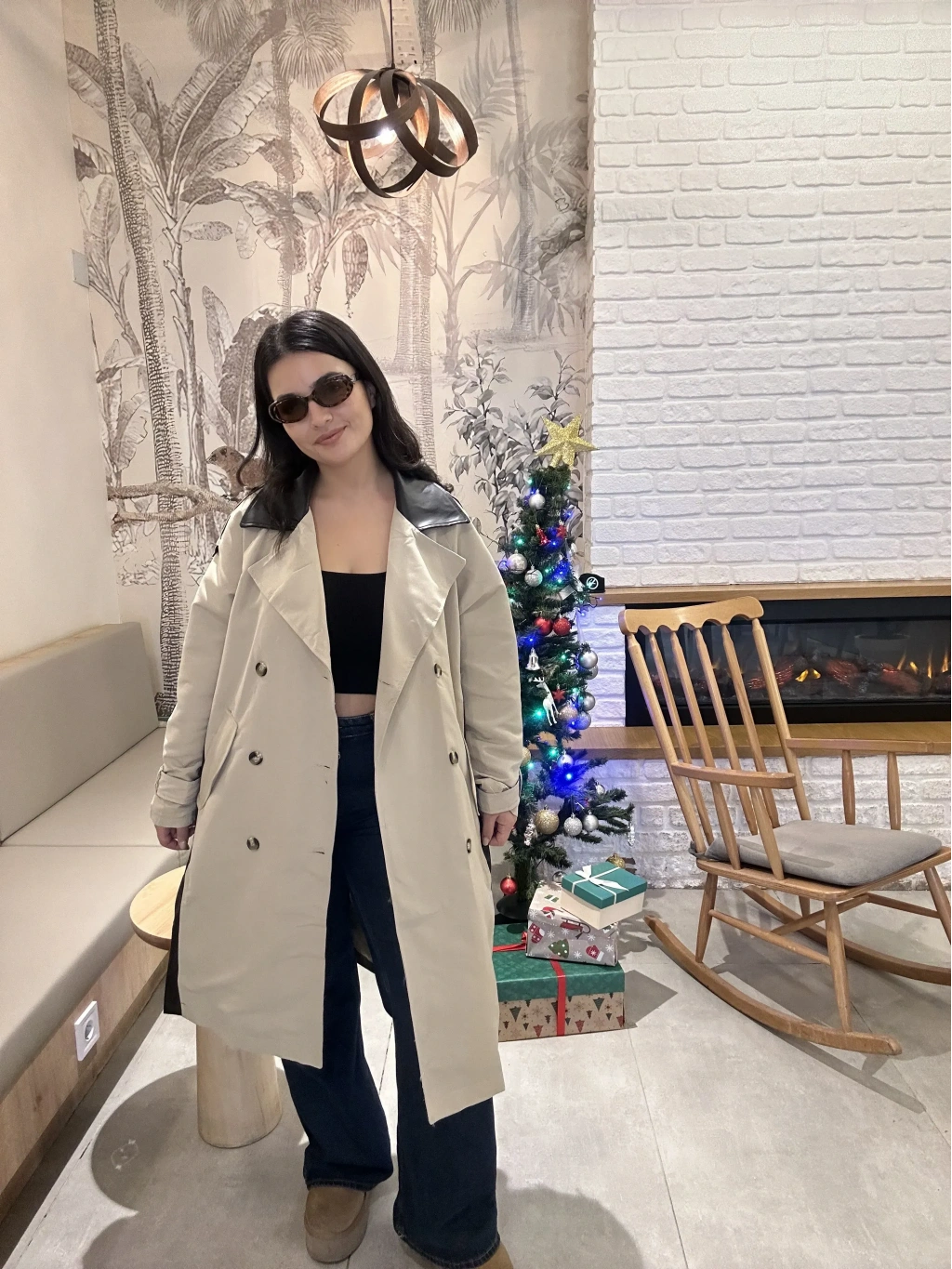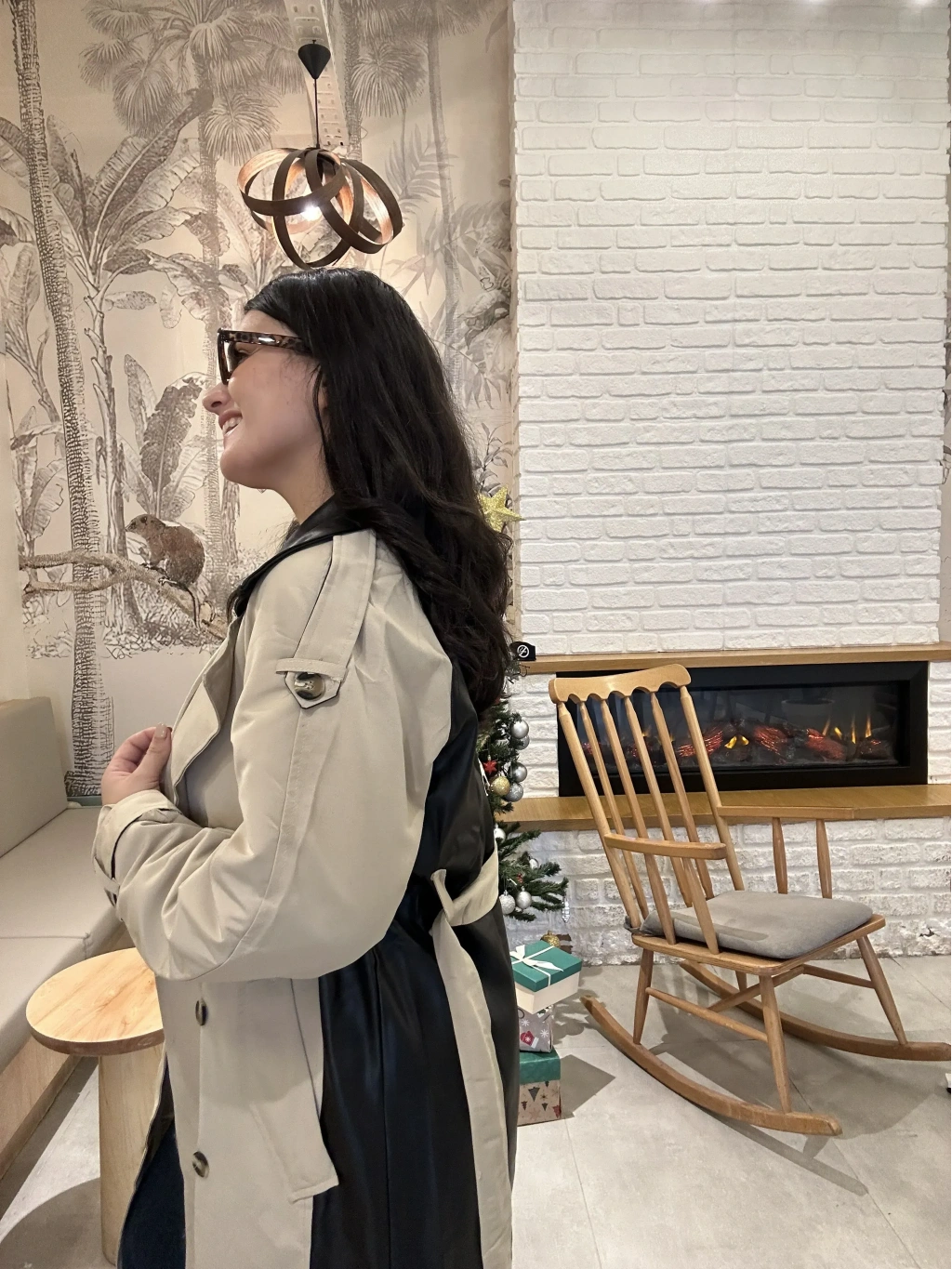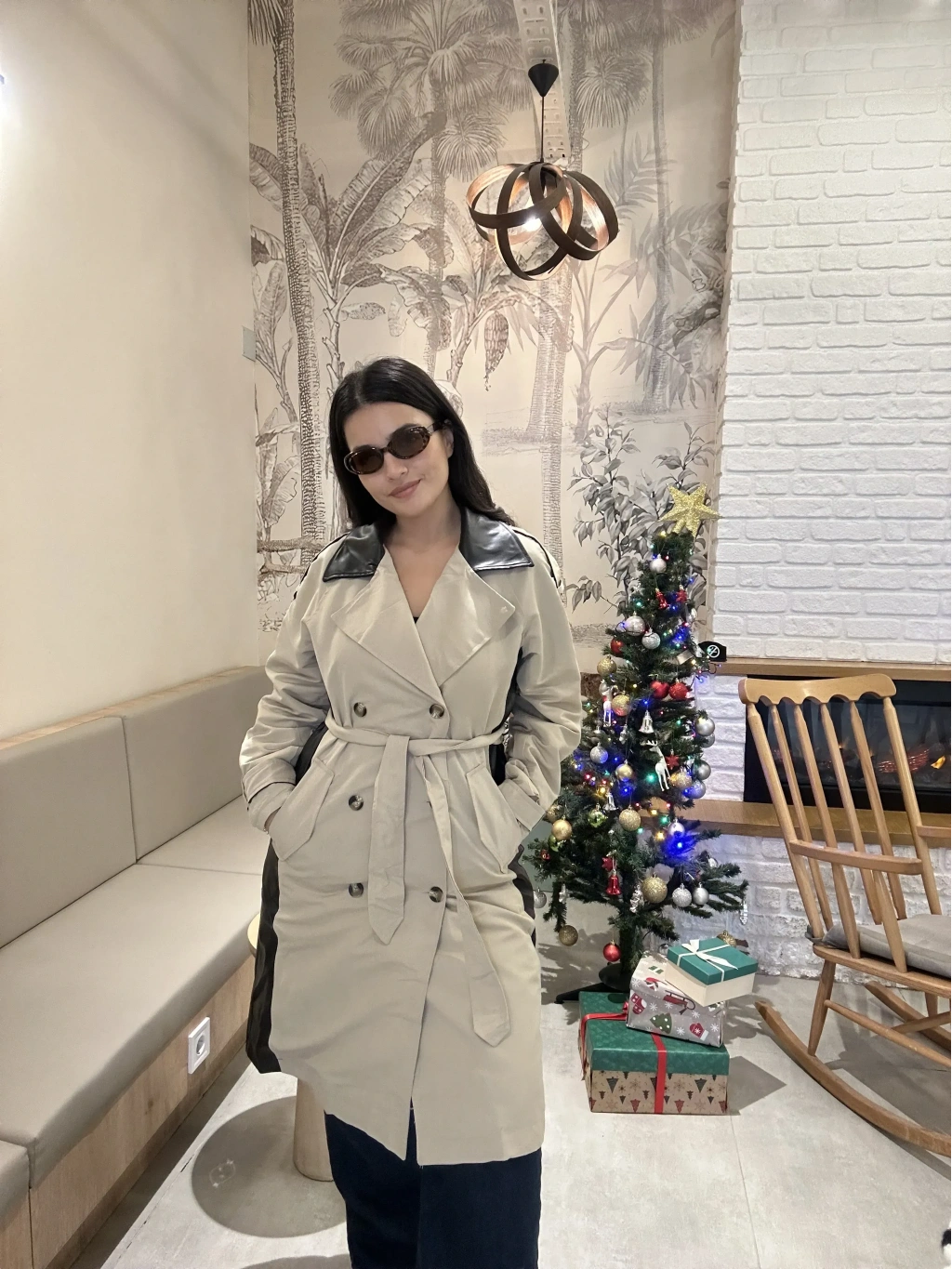 Önü normal trençkot kumaş arkası siyah deri kumaştır. Kalıbı geniştir 1 beden küçük alınması tavsiye edilir. Kemerlidir. Boyu 100 cmdir.