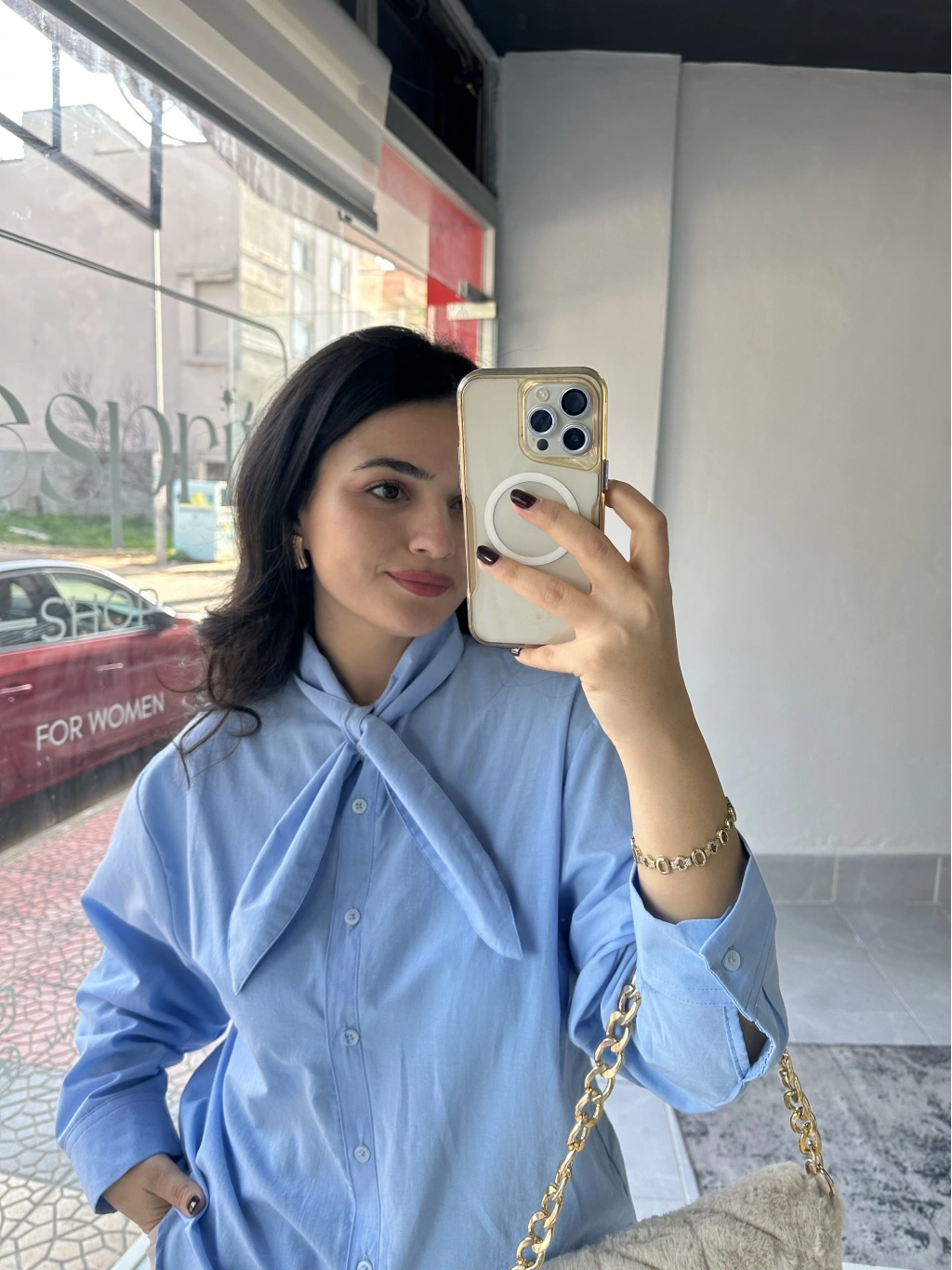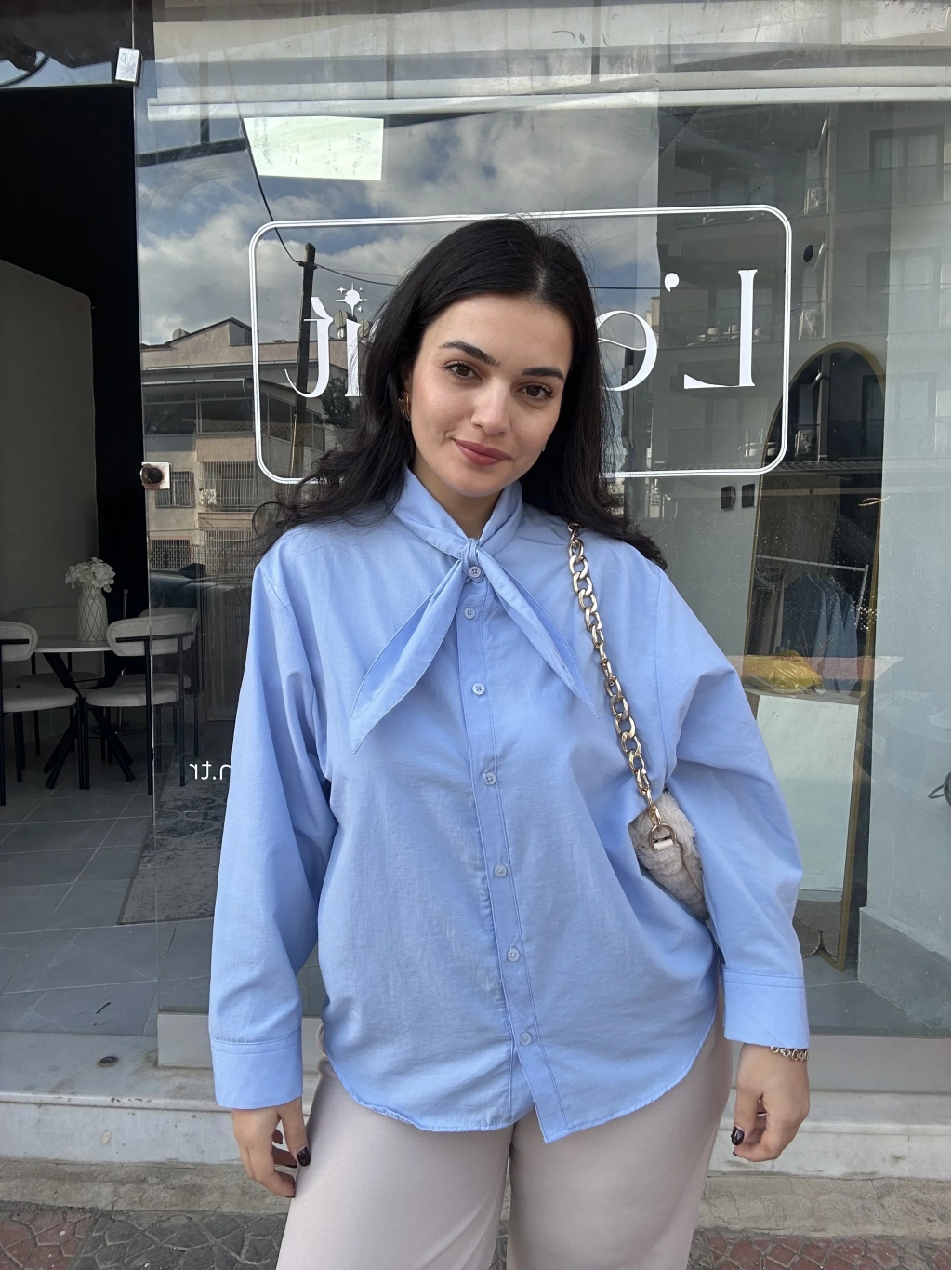 Fular Yaka Poplin Gömlek. Standart bedendir eni gömlek boyu 70 cm eni 50 cm