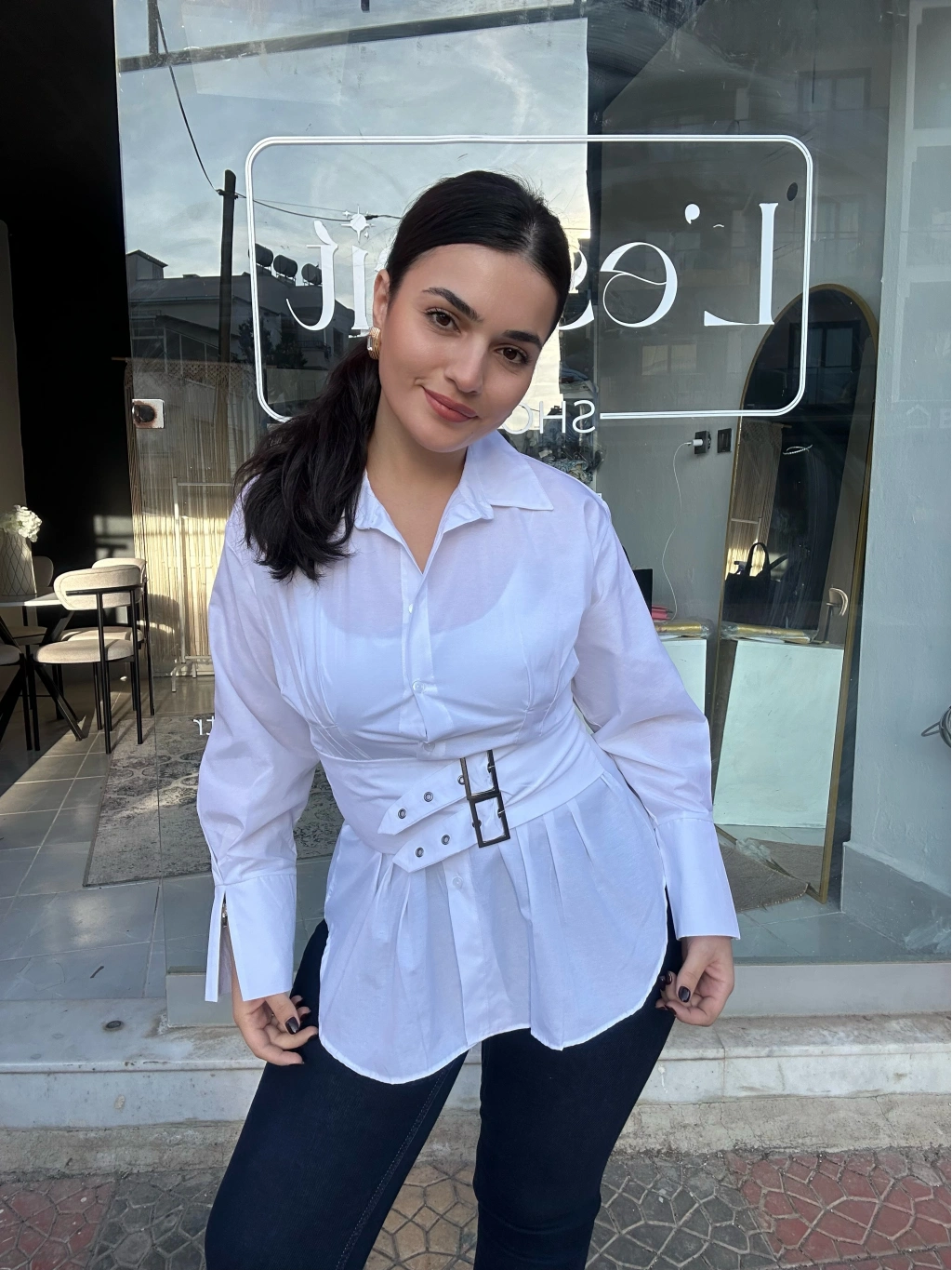Poplin kumaş kemer detaylı gömlek. Kalça boyundadır . Takm kalıptır bir beden küçük tercih edilebilir.