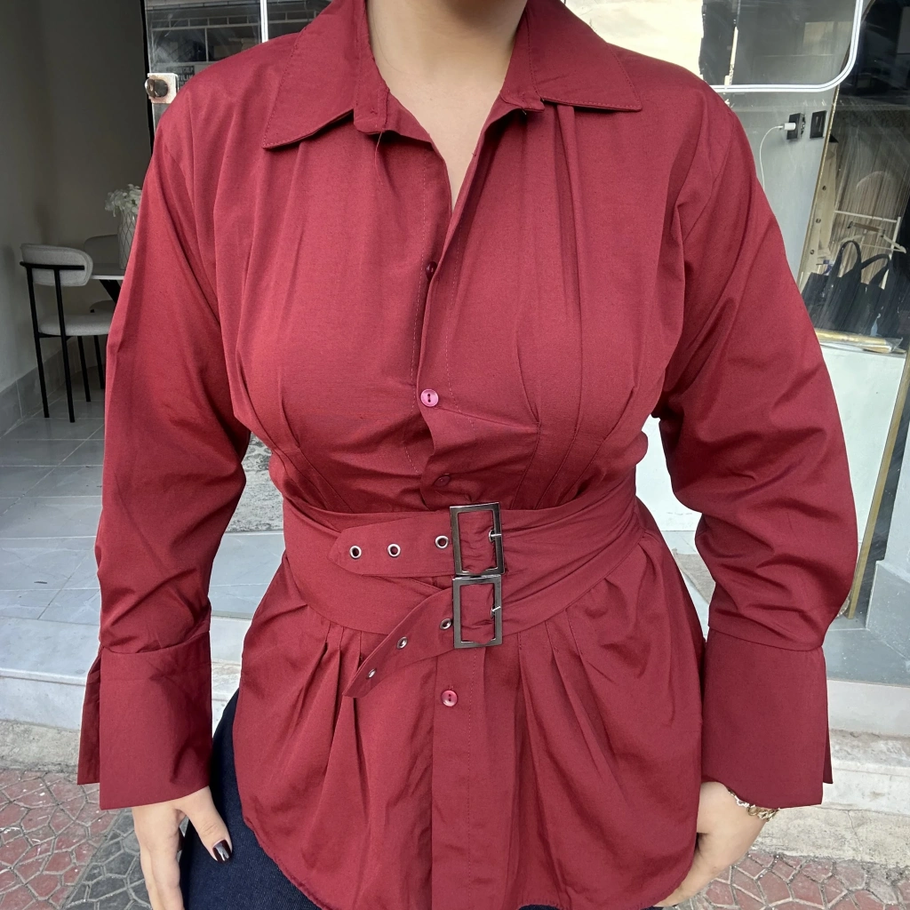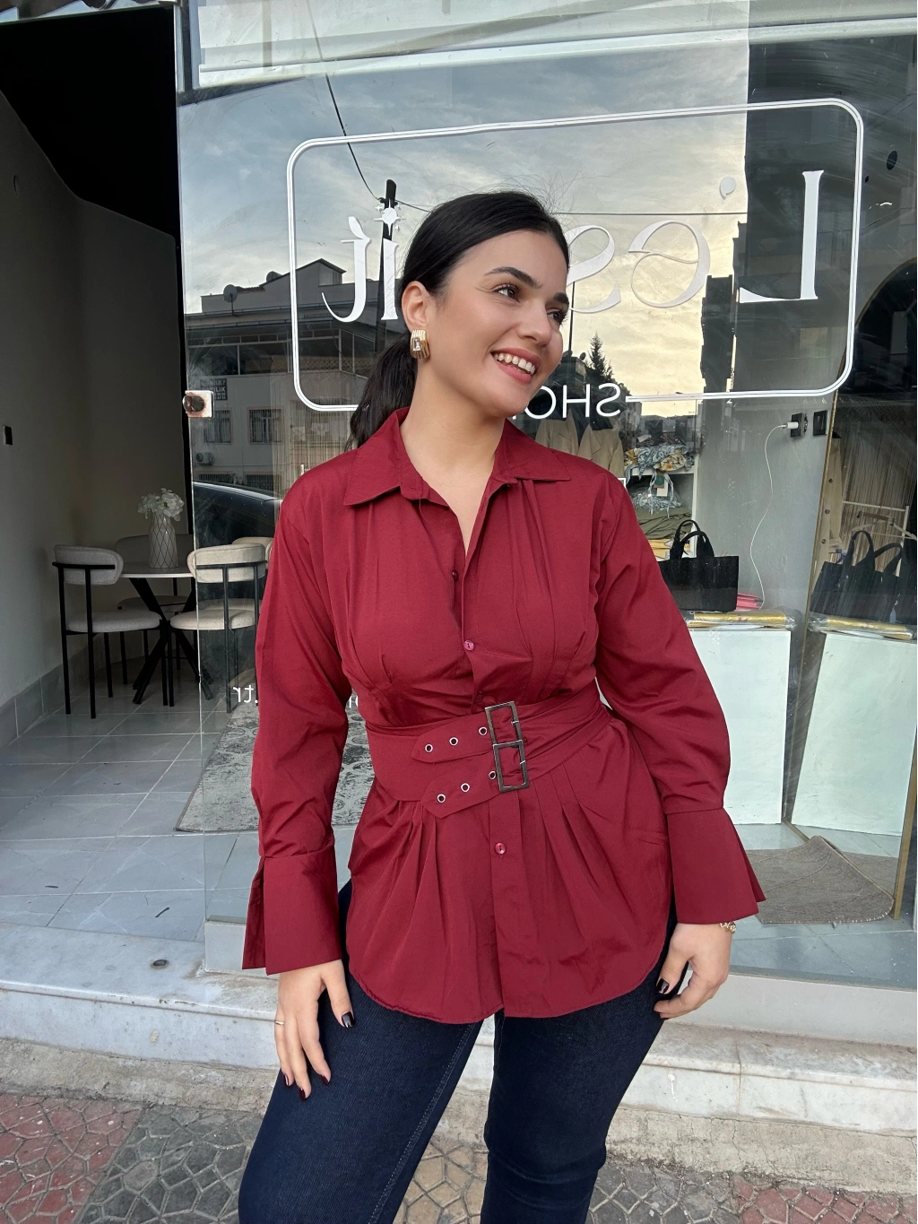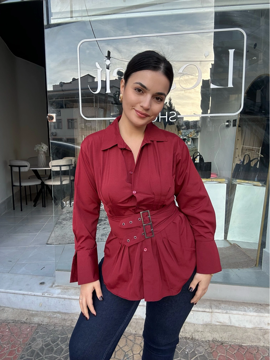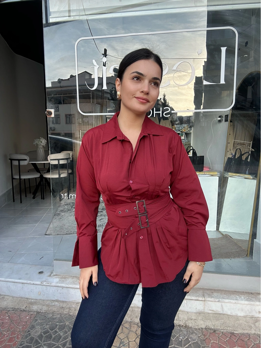 Poplin kumaş kemer detaylı gömlek. Kalça boyundadır . Takm kalıptır bir beden küçük tercih edilebilir.