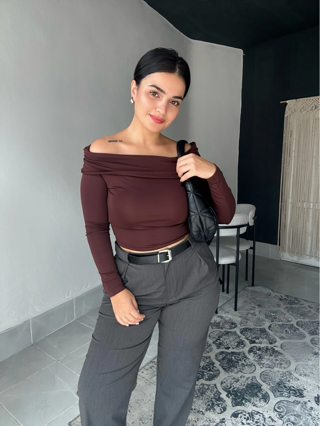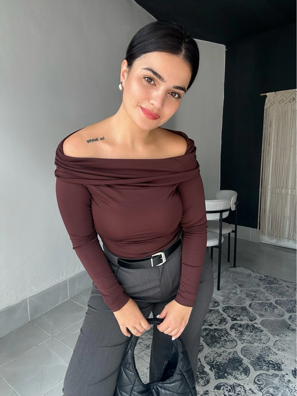 Esnek bir kumaşı vardır. Kahverengi bluzumuzun kalıbı fümeye göre dardır. Bir beden büyük alınması tavsiye edilir.Manken ölçüleri 168 cm 70 kg olup L beden ürün kullanılmıştır.