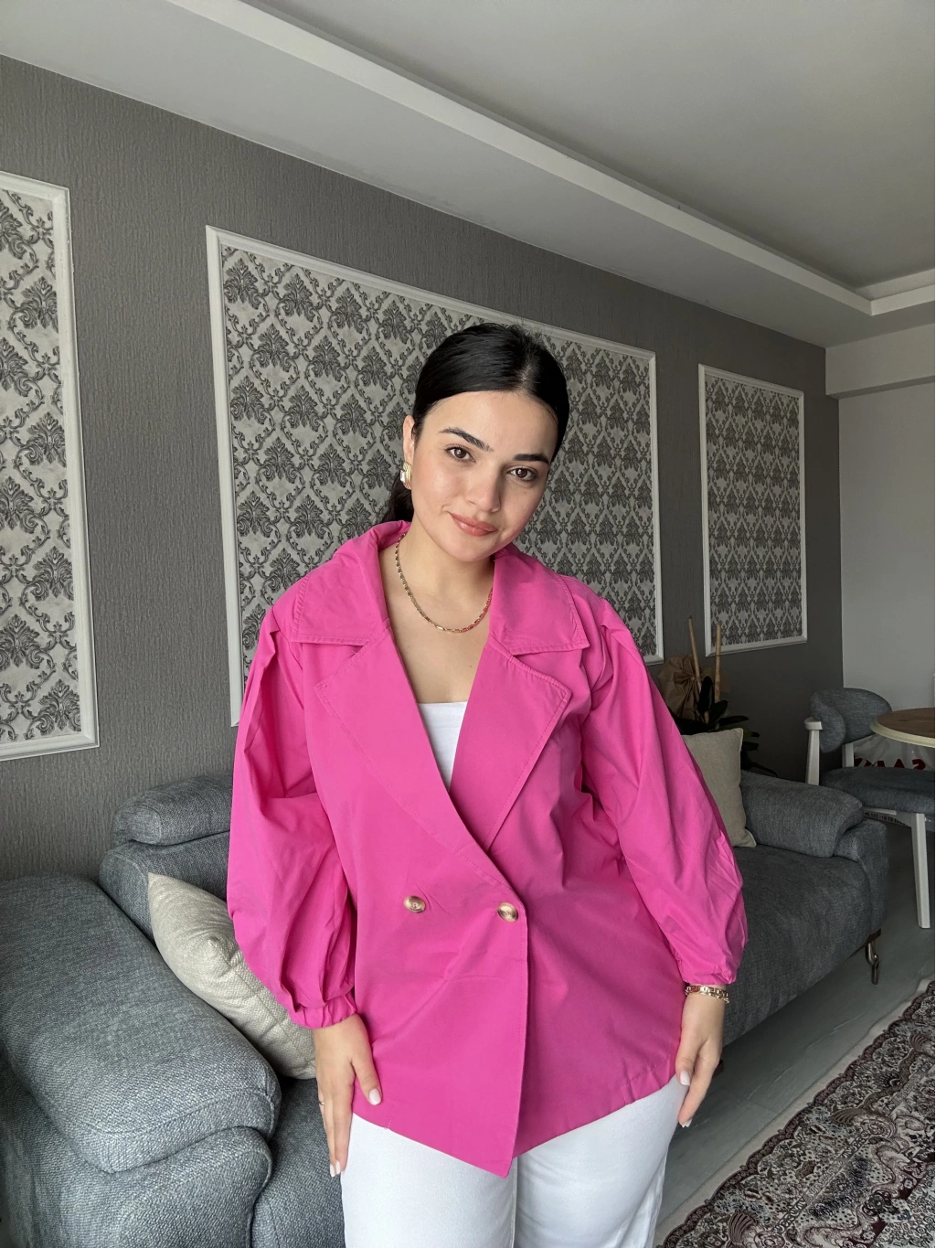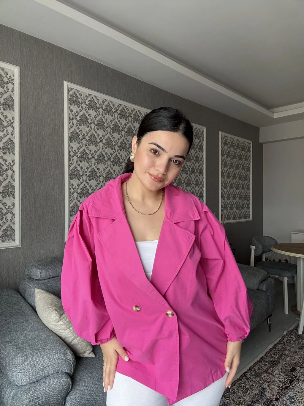 Pembe Oversize Mevsimlik Ceket