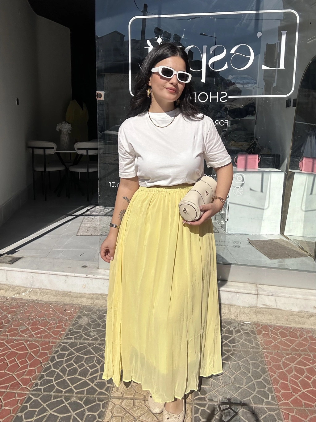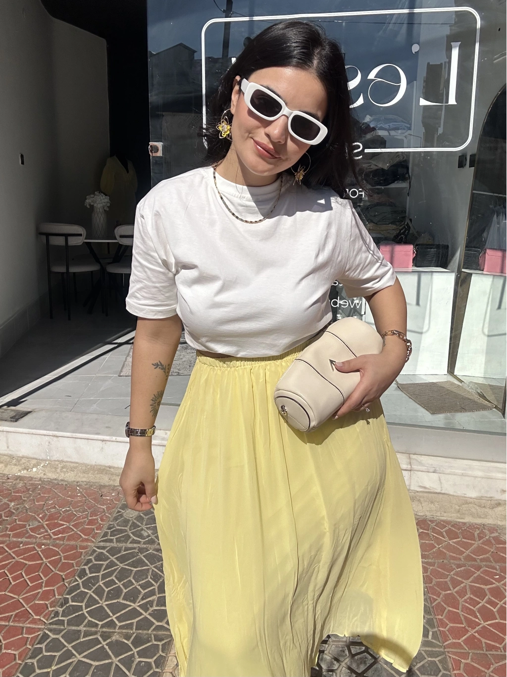 Beli lastiklidir. Manken 73 kg 168 cmdir kullanılan etek S bedendir. Etek boyu 96 cm içi astarlıdır.