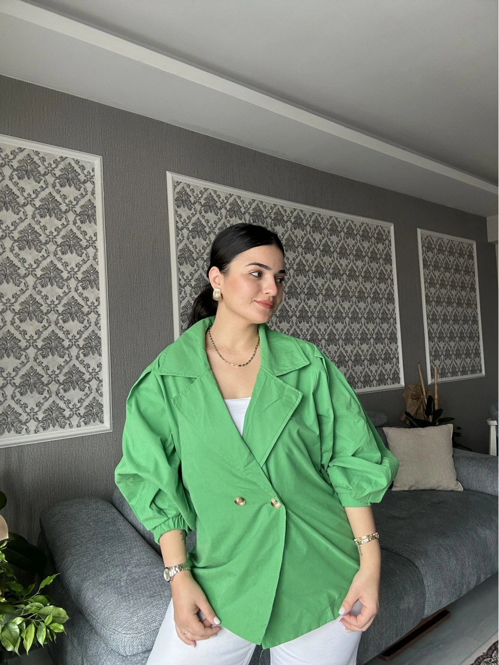 YEŞİL OVERSİZE MEVSİMLİK CEKET